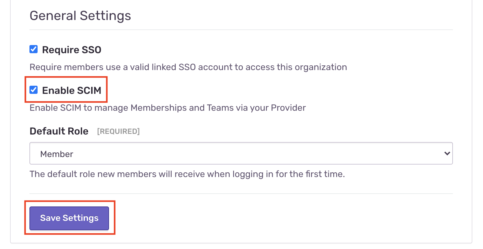 2. Under General Settings select "Enable SCIM", then "Save Settings"