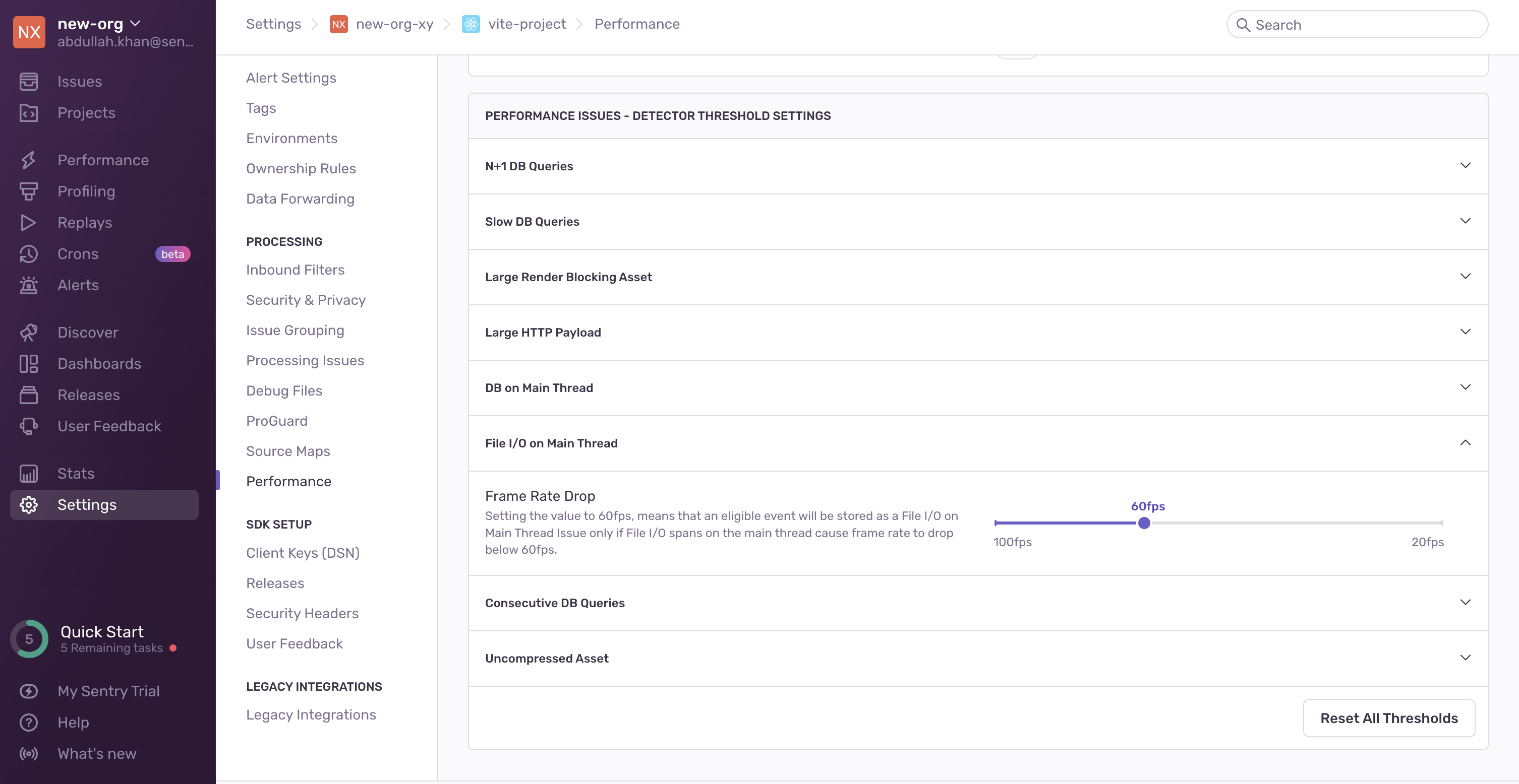 You can configure detector thresholds for file I/O on main thread issues in Project Settings > Performance:
