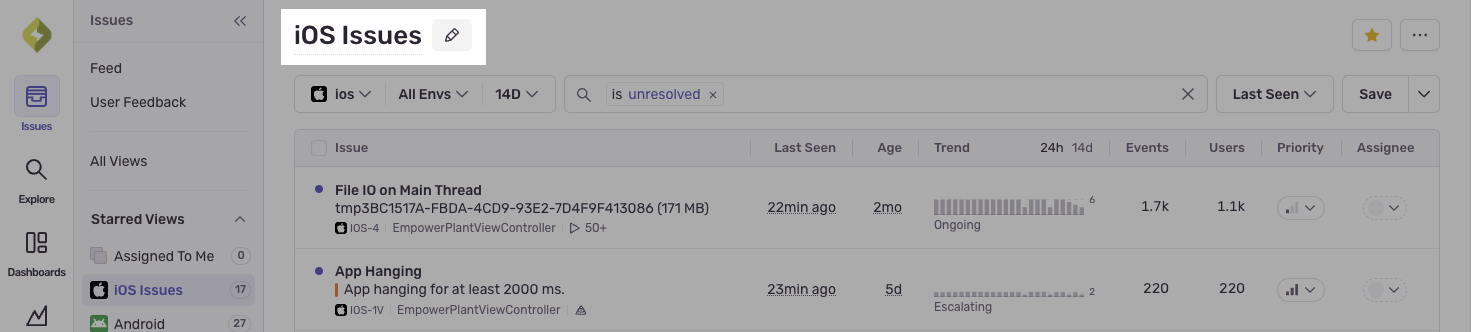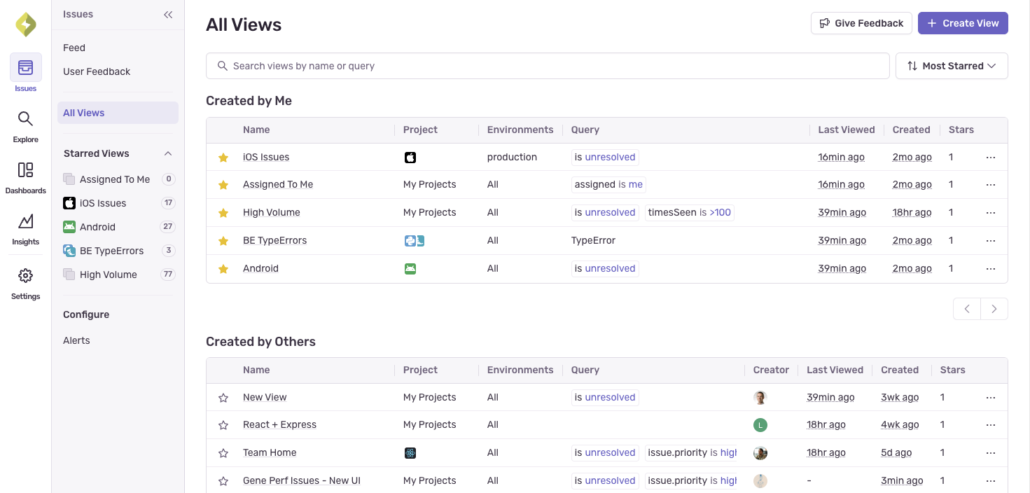 Learn how to create, customize, and share your Issues experience in Sentry.