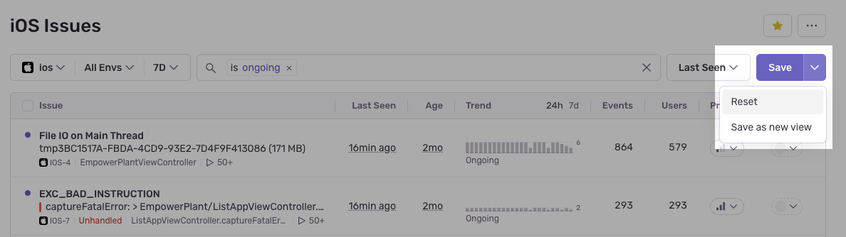 Issue views let you customize and share your issue stream, so you and your teammates can quickly see the issues that are most relevant to you.